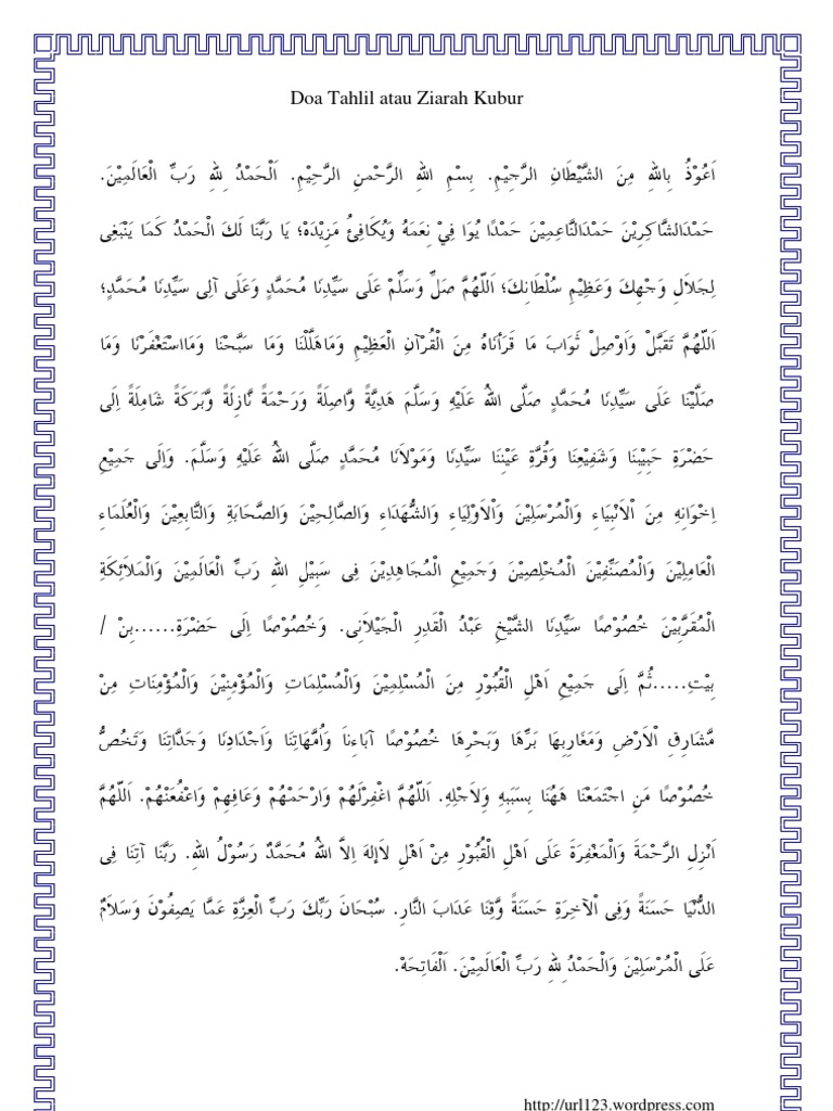 Tahlil 1 Tahlil Bacaan Tahlil Doa Setelah Tahil Dan Doa Ziarah Kubur Sesuai Dengan Tuntunan Pdf Document from reader020.staticloud.net Kuburan menjadi rumah masa depan bagi yang masih hidup. Savesave doa tahlil dan ziarah kubur for later. Ziarah qubur biasanya sering dilakukan menjelang. Simak ulasan tentang √ doa ziarah kubur, √ manfaat ziarah kubur dan √ tata cara atau adab ziarah kubur ke makam para wali berikut. .kubur, hukum ziarah kubur, hikmah ziarah kubur, keutamaan ziarah kubur, doa tahlil ziarah kubur, doa ziarah kubur bahasa arab, doa ziarah doa ziarah kubur | sumber : Pengertian ziarah kubur perlu penjelasan pasti tentang apa yang di maksud dan di tuju oleh artinya : Ketahuilah bahwa setiap makhluk yang bernyawa pasti akan meninggal, entah kapan dan dimana tidak ada satu pun yang mengetahui. Berikut bacaan doa ziarah kubur sesuai islam: