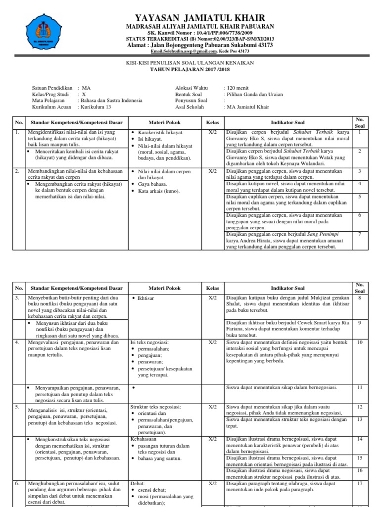 Soal bahasa indonesia semester 1.